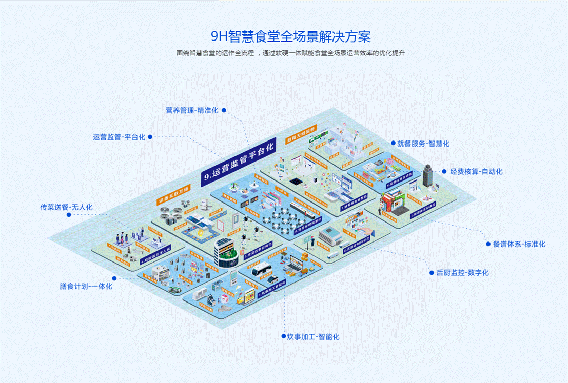 聪慧系统平台:推出精准养分办理系统、智能营业监管系统、全链条办理系统等焦点软件,可实现从食谱生成、物资采购到用餐监管的全流程数字化管控;此中 “9H 聪慧食堂系统” 基于西餐尺度化,整合视觉识别、物联网手艺,已正在多场景规模化使用。